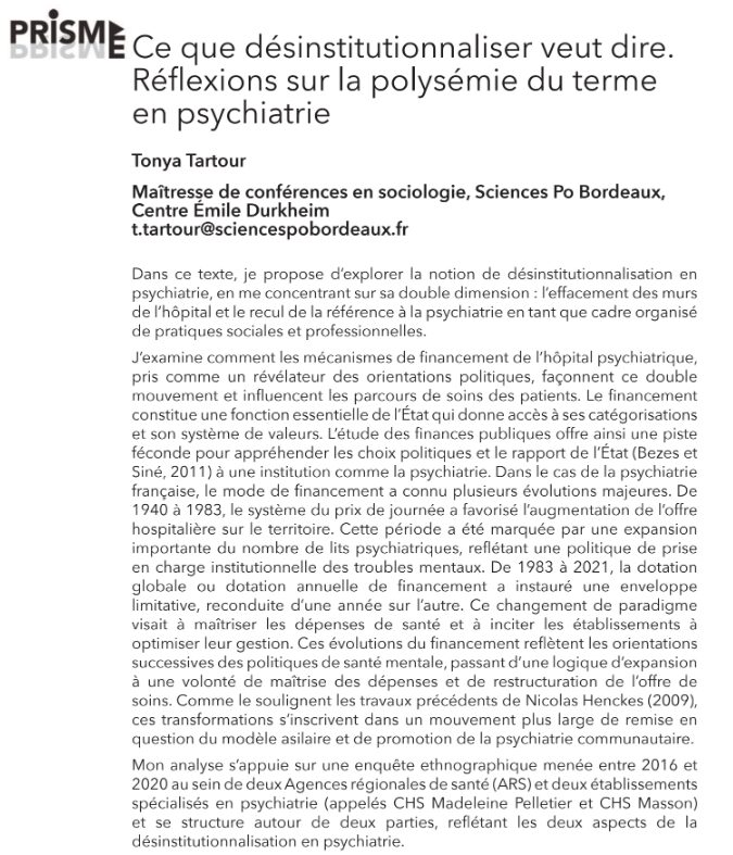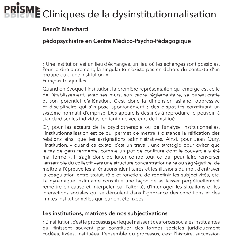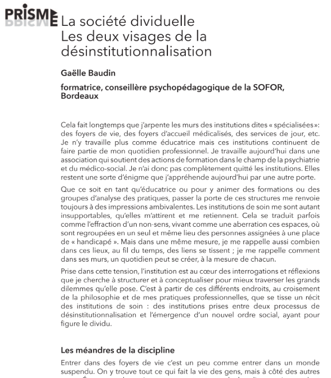 Ce que désinstitutionnaliser veut dire.