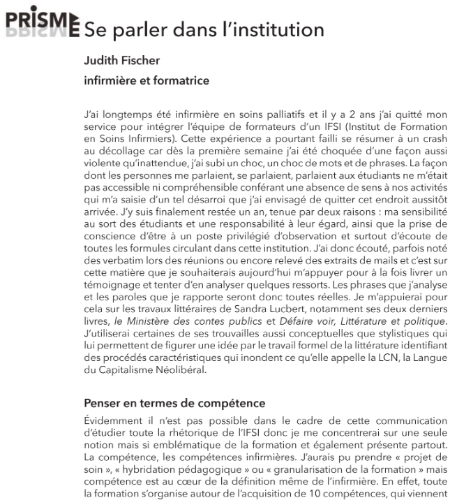 Se parler dans l’institution
