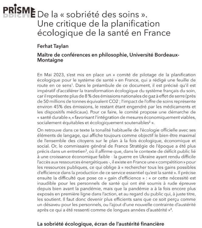 De la « sobriété des soins ».