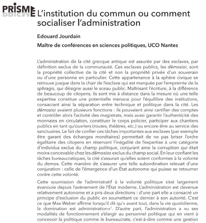 L’institution du commun ou comment
